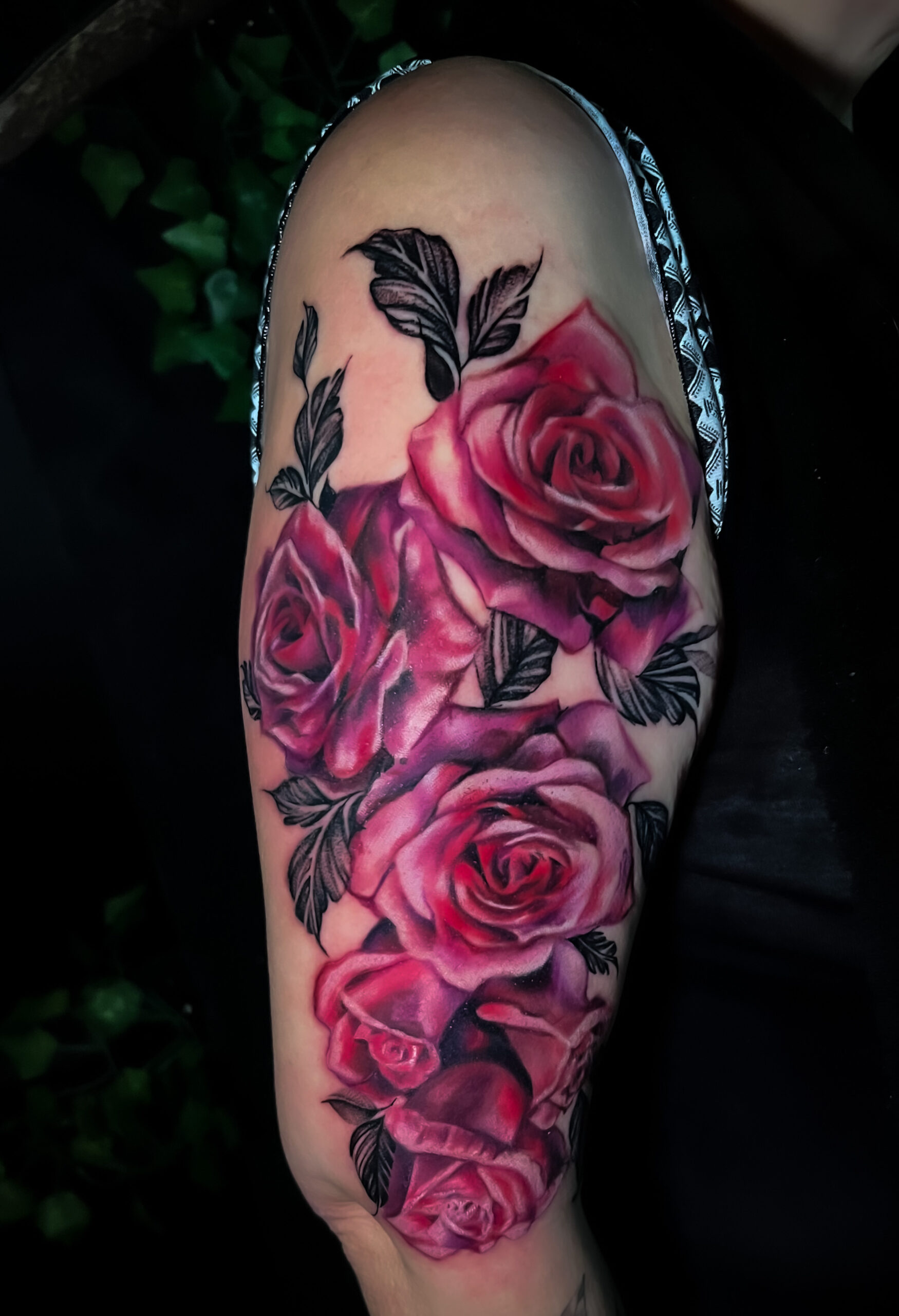 Tatuaż róż w stylu realistycznym na ramieniu